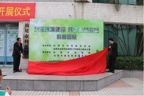 3月4日, “关注环境建设,共享绿色家园” 科普图展开展仪式在汕尾市科技馆举行。出席仪式的除展览主办、承办单位负责人及工作人员,还有部分市区学生及家长代表。