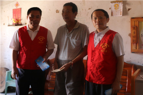 汕尾市科技局局长叶汉汆(左一)和汕尾市科协常务副主席范志能(右一)慰问五保户