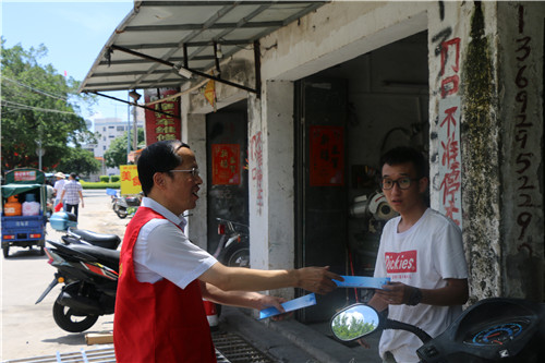 汕尾市科协常务副主席范志能向社区居民发放禁毒宣传资料