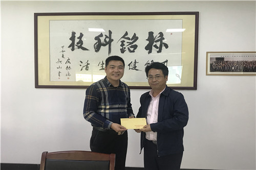 市科协领导慰问全国科普带头人陈庆标(左)