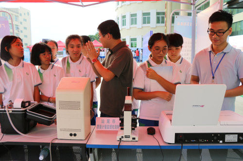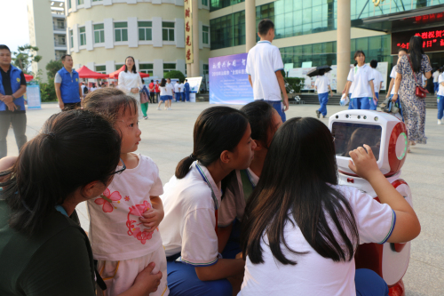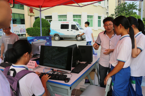 活动邀请中科院广州能源研究所博士生导师游亚戈教授为学生讲授波浪能利用的专题讲座,现场还展示了科普模型、演示新上线科技产品,市科技馆将科普大篷车开到现场为学生体验车载展品。活动受到学生们的热烈欢迎,同学们对科学知识的浓厚兴趣超出我们的想象,以致活动结束还不愿离开。