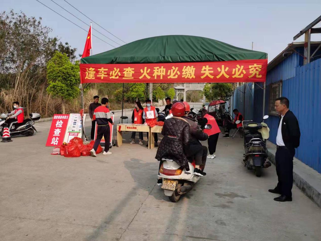党员们在检查岗和卡口值守值班,张挂宣传标语、喇叭广播、摆放护林码、指示牌,对前来祭祖的车辆、群众进行逐一登记检查。