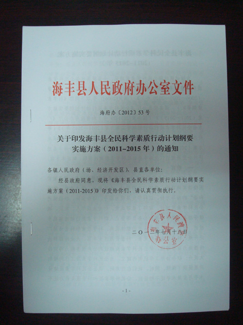 汕尾市海丰县印发全民科学素质行动计划纲要实施方案