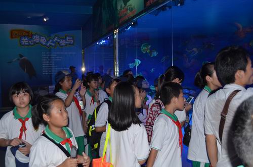 在体验活动过程中,学生们表现十分好奇、主动和积极。基地工作人员针对他们的年龄特点,用通俗易懂的语言,详细介绍了海龟的生活习性、生存现状等科普知识。在工作人员的带领下,学生们缓缓走过展览馆走廊,认真聆听工作人员的讲解,细致地看着标本和图片的介绍,并不时提出有关海龟生态的问题。在海龟养殖区参观时,学生们纷纷表示当亲眼看到海龟时,才真正感觉到“环保”原来就在身边。