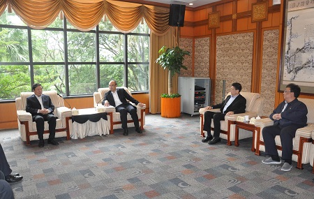 许勤市长(左二)、戴北方副书记(右二)、蒋宇扬主席(右一)与尚勇书记(左一)举行会晤