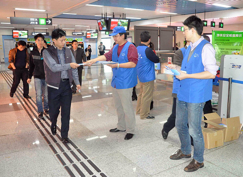 2012年2月15日下班之后,深圳市科协机关党总支组织机关、事业单位和各党支部党员志愿者代表走向地铁“燕南路”站,以饱满地热情组织开展了“公务员志愿者服务日”行动。