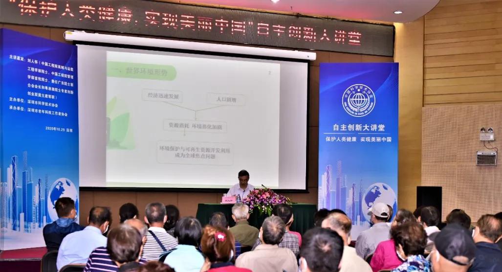 10月29日,“保护人类健康,实现美丽中国”自主创新大讲堂在深圳市科学馆一楼报告厅举办,邀请我国著名的力学家和管理学家、中国工程院院士、粤港澳院士专家创新创业联盟主席刘人怀做主题讲座。