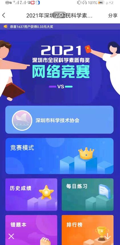 近日,由深圳市科协主办的2021深圳市全民科学素质有奖网络竞赛圆满结束。本次竞赛是全国首个由地方科协主办,面向本地科普中国信息员的知识竞赛。竞赛时间为8月2日至9月30日,题库由科普中国签约专家设计、筛选,涉及多个科技领域。