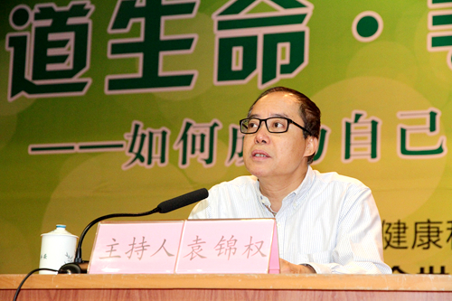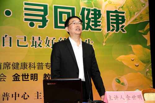 金世明教授在讲座中提出了“养生如防火、治病如救火”、“最好的医生就是我们自己”等健康养生观点,讲述了养生与中医“治未病”思想的关系,提倡通过培养生理健康——保健与营养、心理健康——疏导与调养、道德健康——教育与培养的健康理念养成完整的健康养生思想。他特别引用文学巨匠巴金的语录“没有人因为多活几年几岁而变老,人老只是由于他抛弃了理想。岁月使皮肤起皱,而失去热情却让灵魂出现皱纹”,寄语与会代表“养生先养心,养生重在养心”,要保持健康的生活方式才能拥有健康长寿的人生。