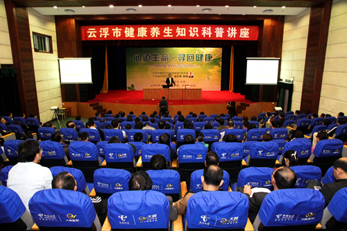 2015年11月13日上午,由广东省科普中心、中共云浮市委宣传部、市科协、市科技局、市社科联共同举办的“广东科普大讲堂”云浮市健康养生知识科普讲座在云浮市举行。云浮市委副书记、市社工委主任袁锦权、市人大常委会副主任罗立旷、市政协副主席阙妙丽、市委宣传部副部长、市社科联主席马若义、市科技局局长曾云锋、市科协主席梁敏君等领导出席,市直和中直、省直驻云浮单位,市直部分副高以上职称人员,市科技、科协和市社科系统副科以上干部,及有关单位代表200余人参加讲座。