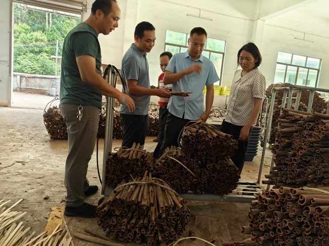 学习交流人员还到位于榃滨镇的罗定市粤桂实业有限公司,参观了解学习肉桂初加工产品出口、加工天然苯甲醛、深加工肉桂醛等情况。
