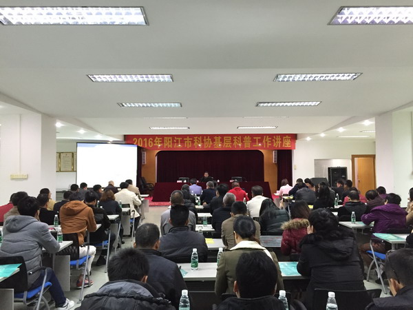 1月15日上午,阳江市科协举办基层科普工作培训班,邀请了省科协科普部部长黄善辉和副主任科员冯娟为培训班做了基层科普工作专题讲座。参加培训的有科协系统机关人员、有关农村专业技术协会、农村科普示范基地单位负责人及申报项目负责人、农村科普带头人、已获得国家和广东省科普示范社区的主要负责人和项目负责人等共100多人。