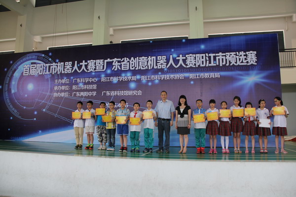 广东省创意机器人大赛由广东科学中心、广州市教育局主办,自2012年开始已连续举办4届,影响逐年扩大,参与人数逐年增加。今年的省赛将于9月在广州举行,阳江市预选赛作为广东省创意机器人大赛的其中试点赛区之一,此次预选赛产生优秀队伍和优秀指导老师将送到广州参加省赛。