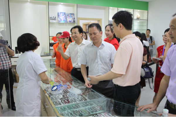 阳江光明眼科医院何宁院长陪同市科协主席郑辉印参观医院配镜部