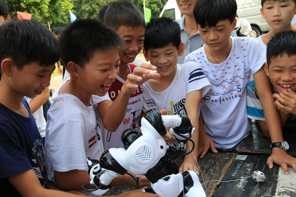 同时,科普大篷车开进大八中学,科技馆趣味活动同时举行,活动深受大八中学广大师生欢迎。“手蓄电池”、“拓扑”、“动画”、“手摇发电”等科普展品深深地吸引了该校几百名边远山区农村初中学生,科技馆展出的机器人也围满了好奇的学生,或三五成群进行讨论,或饶有兴致测试一番。通过动手、动脑,同学们在实践操作中感受着科技的神奇,极大地开发了他们的智力,开拓了他们的眼界和视野,在他们的心灵里埋下了科学创新的种子,激发了他们爱科学学科学的热情,放飞他们的梦想,科技引领他们的未来。