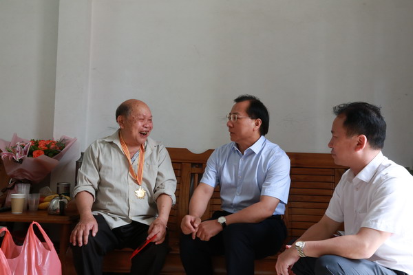 5月16日上午,阳江市委副书记、市政法委书记黎泽林在市科协主席郑辉印的陪同下,前往为阳江市有过突出贡献的老科技工作者刘永峥家里进行慰问。黎副书记与刘永峥同志进行亲切交谈,并代表市委、市政府向刘永峥同志表示关怀及问候。黎副书记肯定了刘永铮同志对农业事业的奉献,赞扬刘永铮同志为阳江市农业经济发展贡献了力量,希望老同志保重身体,继续发挥余热,利用自身的科技知识培养更多人投身科技研发事业,为全市经济社会发展做出积极贡献。