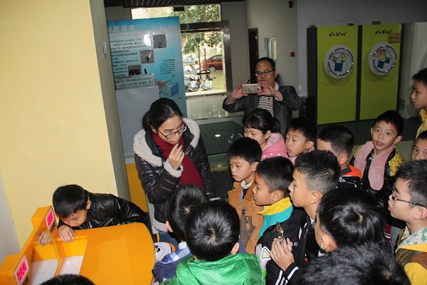 接着,讲解员详细地向学生讲解展品蕴含的科学原理,例如通过“倾斜的小屋”、“椎体上滚”、“方轮车”、“小球旅行记”等展品,讲解数学、力学、物理学的基础科学知识;利用“血压测试”、“记忆力测试”、“反应测试”等展品,讲解生活保健方面的基本知识。讲解结束后,大家自由活动,馆内120多件集互动性、知识性、和科学性于一体的科普展品,瞬间吸引学生的眼球,纷纷上前试玩体验。