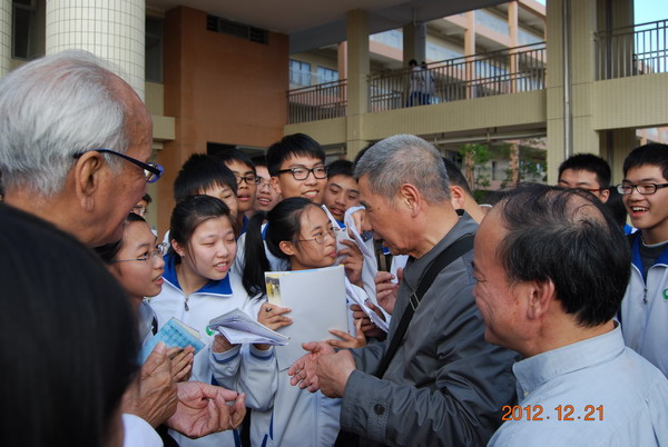 当77岁的中科院院士曾庆存走进阳江一中学术报告厅,早已等候的学子们纷纷站立起来,用持久的、热烈的掌声欢迎这位杰出校友的归来。约一个小时的演讲中,曾院士旁征博引、妙语连珠,引得师生们掌声如雷。谈及对后辈的寄望,他感慨地说,阳江的繁荣要靠年轻人,民族的繁荣要靠年轻人,世界的繁荣也要靠年轻人……演讲结束,学生们迟迟不愿离去,他们掏出笔和纸,将曾院士团团围住,请求留下签名。