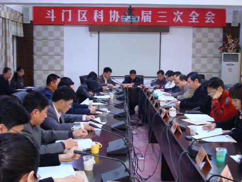 3月10日, 斗门区科协在区机关大院一号楼309会议室召开区科协一届委员会第三次全体会议。区政府副区长管伟、区长助理李炳秋出席了会议。区科协一届委员会全体委员、区相关部门单位领导等共40多人参加了会议。会议由区科协专职副主席周朝霞同志主持。