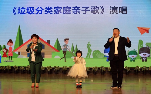 活动中,多个环保主题作品与获奖优秀作品轮番上演,获奖作品《垃圾分类亲子歌》中,表演者4岁的葛伊之和爸爸妈妈“唱出”垃圾分类方法。葛伊之告诉记者:“爸爸妈妈教会我要把垃圾分类后丢到垃圾桶里,这样才能保护环境。