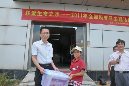 9月17日上午,珠海市科协启动了2011年全国科普日主题活动。来自珠海市容闳学校师生、家长共80多人参与了启动仪式。仪式上珠海市科协领导向容闳学校代表赠送“珍爱生命之水”实验包。仪式结束后,组织大家走进广昌泵站、拱北水厂、拱北水质净化厂、珠海市水质监测中心,了解水资源保护等科学知识。