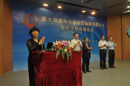 第九届珠海市学术活动周10月12日上午在市图书馆拉开帷幕。珠海市委副书记、秘书长钱芳莉,珠海市科协党组书记、主席肖润新等领导,中国工程院陈清泉院士,俄罗斯工程院刘焕彬院士,市直各单位以及市级所属学会相关人员等200多人出席。