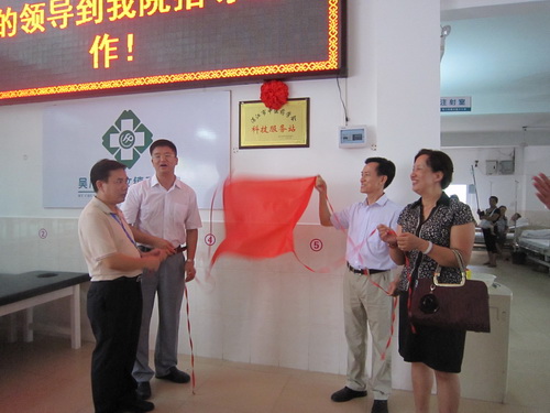 2014年8月6日上午,湛江市中医药学会科技服务站揭牌仪式在吴川市振文镇卫生院举行。湛江市科协主席肖斌、副主席许进,湛江市第一中医院院长、湛江市中医药学会蔡柏会长,湛江市第一中医院副院长、湛江市中医药学会吴洪副会长及振文镇卫生院医护人员出席了挂牌仪式。湛江市第一中医院吴洪副院长主持了揭牌仪式。