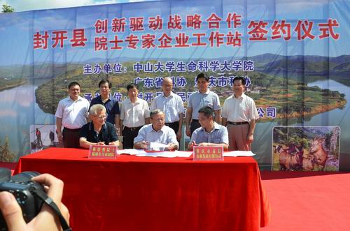 揭牌仪式上,封开县政府与中山大学生命科学大学院,肇庆市益信农业发展有限公司与林浩然院士、陈瑶生专家团队签订了合作协议。该项活动是中国科协年会“全国院士专家助粤产业行动”系列活动之一。合作双方将在开展农业科技咨询活动、加强农业科技产业扶持、科技信息交流与服务和成立农业科技合作协调领导小组等方面进行广泛合作。中国工程院院士林浩然表示,中山大学生命科学大学院的科研成果将在封开县实现无缝对接转化,畜牧、水产、基因研究等最新研究成果都可以在封开县率先使用。