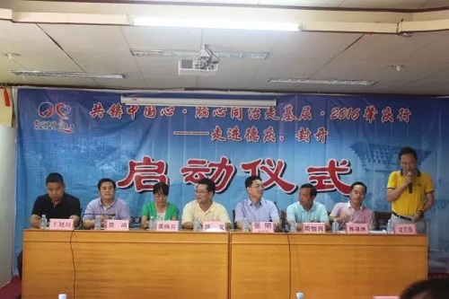 肇庆市科学技术协会陈义主席、中国农工民主党肇庆市委会黄梅芬副主委、肇庆市卫生和计划生育局张明副局长、肇庆市第一人民医院周怡兴副院长、肇庆市医学会凌芝雄会长、共铸中国心广东省副组长王旭珏先生及德庆县、封开县科协、医院及有关镇分管领导,肇庆和德庆各大医院的义诊专家参加了有关活动。陈义主席在启动仪式讲话中对各位省市专家和制药企业的爱心志愿者表示热烈的欢迎,对此次共同参与推动此类活动的协作团队给予了赞扬与肯定,希望继续加强学会与社会力量的联合协作,将科普下乡和爱心事业传递下去,为肇庆奔小康传播更多的科技支撑和正能量。