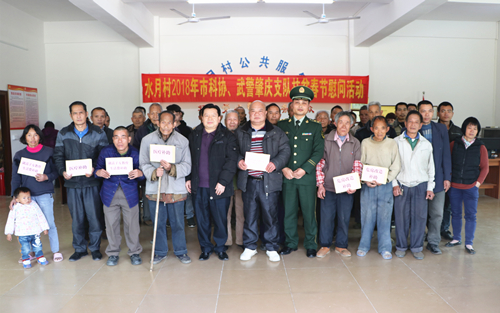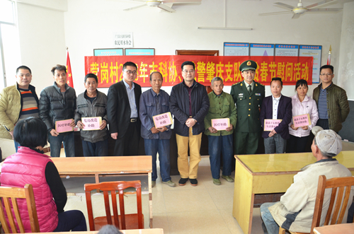 2月13日,春节前夕,肇庆市科协和武警肇庆市支队领导班子及机关同志一行,赴挂点的广宁江屯镇营岗、义和、水月三个村开展精准扶贫送温暖活动。