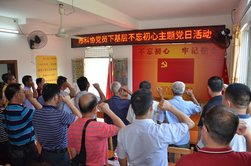 为深入学习贯彻习近平新时代中国特色社会主义思想和党的十九大精神,贯彻落实习近平总书记重要讲话精神,纪念中国共产党成立97周年,忆党史、学党章,重温入党誓词,6月27日,肇庆市科协机关党支部组织全体党员深入市科协社会主义新农村建设对口帮扶村——封开县渔涝镇禾楼村,与封开县科协、禾楼村党支部一起开展庆“七一”不忘初心主题党日活动。