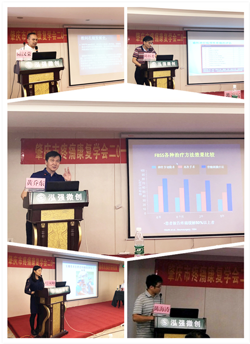活动中,广东省疼痛学分会常委、广东省第二人民医院疼痛中心负责人黄乔东教授讲授了FBSS各种治疗方法效果比较。云浮市人民医院肿瘤科主任陈炳光讲授癌性神经病理性疼痛的评估;高要区人民医院骨科副主任陈海涛和麻醉科主任叶凤卿分别作了相关讲座。