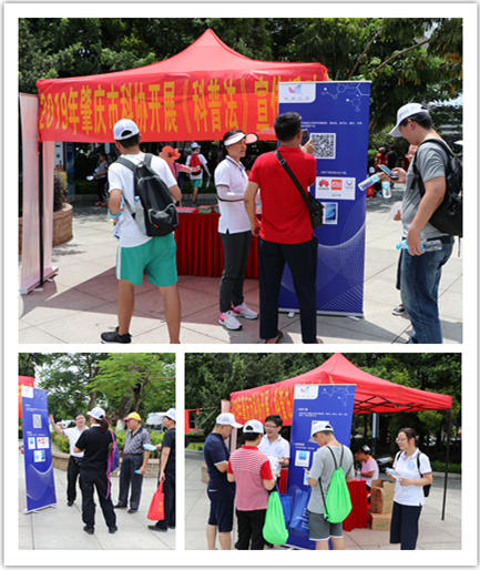 在徒步终点处,肇庆市科协设点宣传《科普法》,通过积极发动社区群众参与2019年全民科学素质网络竞赛,发放《科普法》宣传单张和科普中国品牌宣传资料,进一步增强了广大人民群众科技法治意识,提高人民群众防范反科学、伪科学的技能,营造人人依法开展和参与科普活动的氛围。
