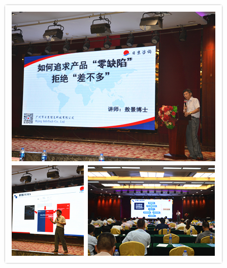 报告会邀请了广州市日京信息科技有限公司总顾问敖景博士作《如何追求产品“零缺陷”拒绝“差不多”》质量专题讲座,敖景博士从无故障技术、质量控制原理、海恩法则、产品失效与成本关系等方面作了深入地讲解,还列举了大量企业质量管理典型案例,对肇庆市企业质量管理问题作出了深入分析,受到了与会者的欢迎。