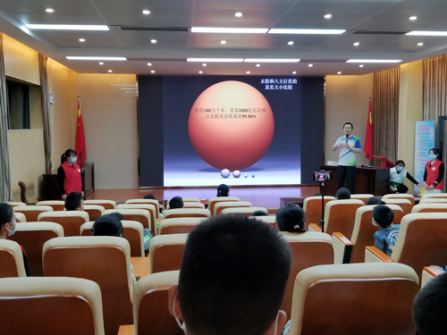 天文科普讲座上,姚夙博士运用丰富的天文知识,通过视频、图片等形式,向参与活动的孩子们生动有趣地讲解了奇妙的天文知识,为观星实践作下理论铺垫,激发了孩子们对天文科学的兴趣。
