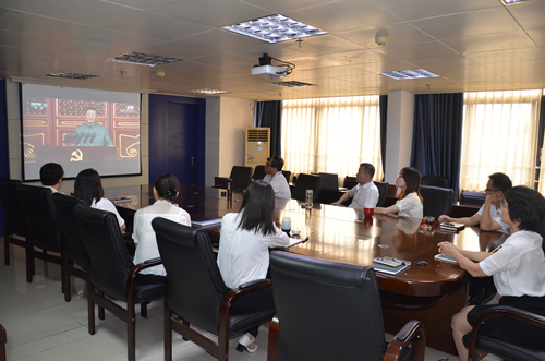 鲜艳的旗帜、庄严的场景、嘹亮的合唱、热烈的氛围,感染着看直播的每一位党员干部。大家聚精会神、认真聆听习近平总书记发表的重要讲话,感怀中国共产党100年来的光辉历程和取得的历史性成就、发生的历史性变革,接过和响应党中央迈向新征程的号角。