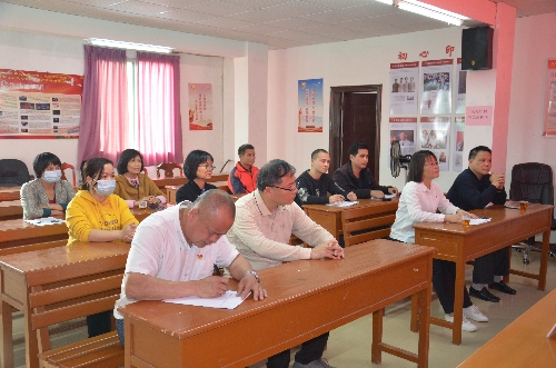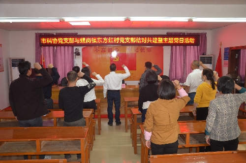 活动由肇庆市科协三级调研员、党支部副书记吴洪主持。全体党员首先进行了重温入党誓词,螺岗镇委书记黎柱作为领誓人,带领两个支部的党员一起高举右手,面对党旗,再次庄严宣誓。
