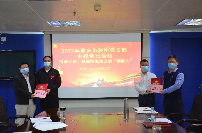 4月20日,肇庆市科协党支部组织开展以“致敬抗疫路上摘星人”主题党日活动。肇庆市科协党组书记、党支部书记余飞兴主持会议,机关全体在职党员参加了活动。
