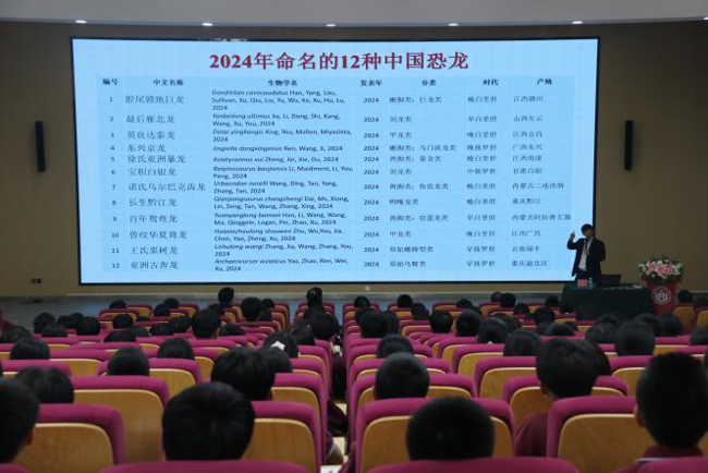 活动现场,专家们通过生动的案例、通俗易懂的语言,深入浅出地引导学生理解科学原理,激发他们的科学兴趣。在四会市东城中心小学、四会市衡立实验学校,中国科学院研究员王原教授以《从神话龙到中国恐龙》为题,通过化石标本展示与3D复原动画,带领学生穿越亿万年前的白垩纪,揭示中国恐龙的奥秘。
