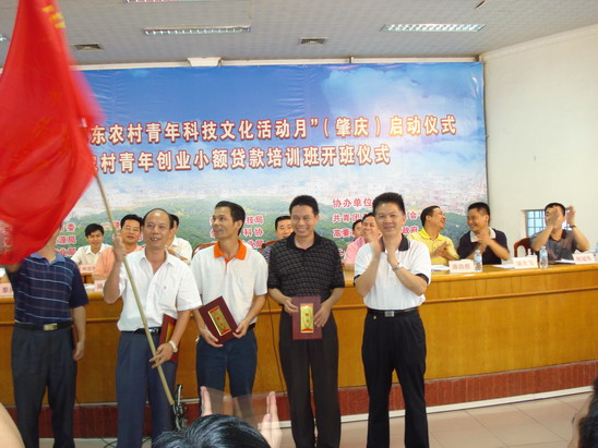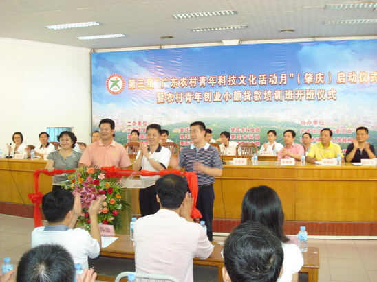 7月15日,共青团肇庆市委、肇庆市科协举办第三届“广东省村青年科技文化活动月”(肇庆)启动仪式暨农村青年创业小额贷款培训班仪式。广东省科协副主席吴焕泉、肇庆市政府副秘书长陈义、肇庆市团委书记王良华、肇庆市科协副主席梁戈飞等有关领导出席了启动仪式。启动仪式后,与会人员还到肇庆市农村青年科技创业示范基地进行了参观。