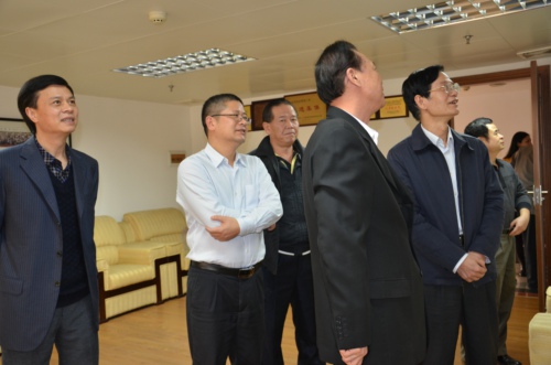 肇庆市政协主席张成文(右一)、副主席杨永(左一)视察市科协条件建设情况