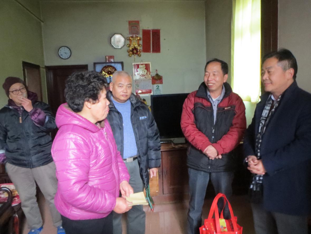 春节前夕,为进一步做好联系和服务群众工作,推动“阳光先锋”机关党组织驻点基层服务工作的深入开展,中山市科协党支部积极开展困难党员和群众慰问活动。2月2日,市科协党组成员、秘书长海春生带领党员志愿者到沙溪镇象角村开展节前慰问活动,村党支部书记阮杏桥等村干部陪同走访。
