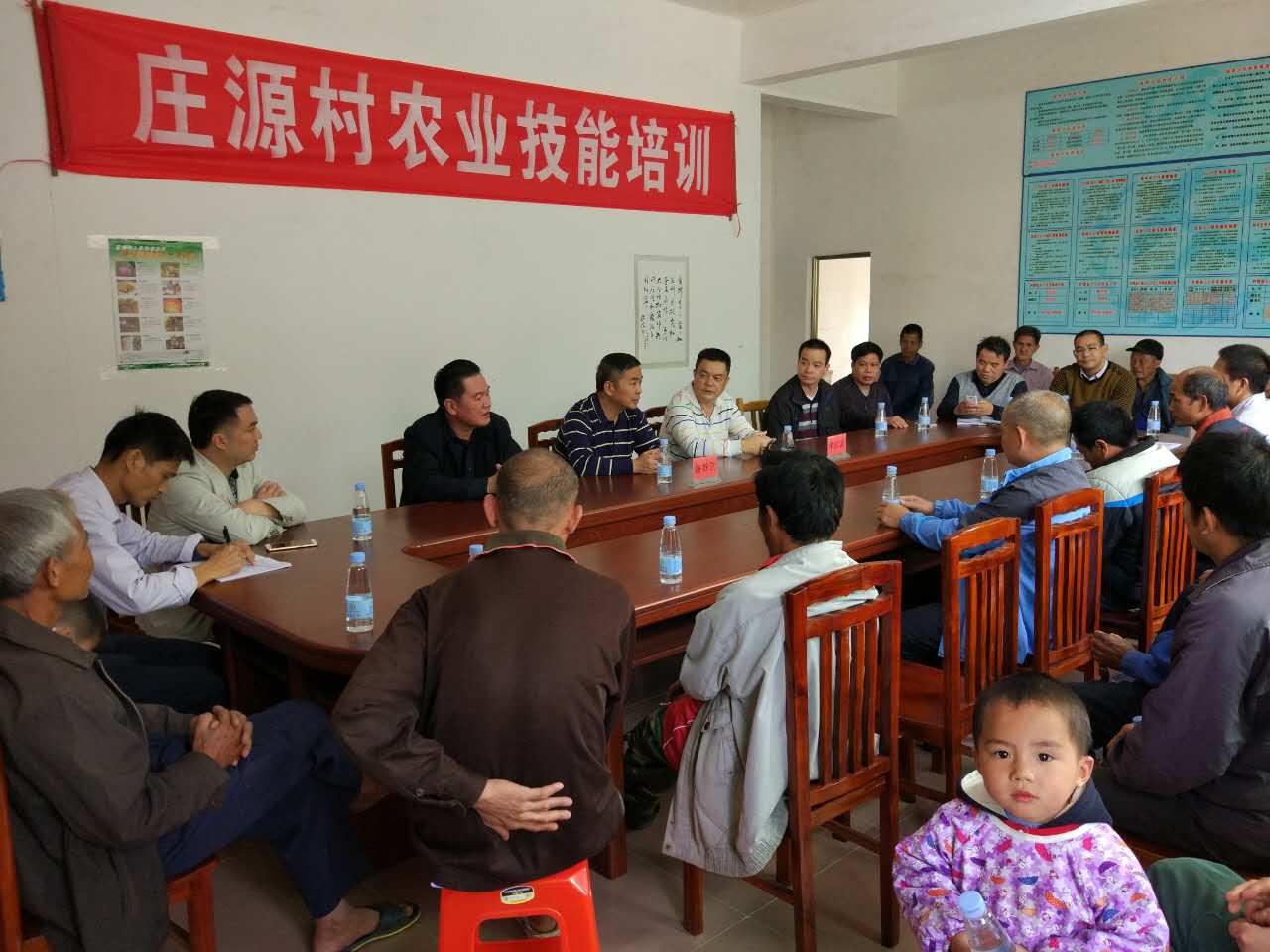 当天下午,庄源村农业技能培训活动在村委大楼举行,40多位村民群众前来交流学习。中山市桂山蜜蜂博物馆的养蜂专家刘国恩先生在实地考察村内蜜蜂养殖状况基础上,向村委会提出产业发展意见建议,并向群众普及宣传养蜂知识,现场为群众答疑解惑。种养专家林汉诚先生则专题讲解了农业种养的几种主要方法,结合村内肉桂种植、家禽饲养较多的实情,一一进行分析讨论。现场气氛热烈,村民踊跃发言提问,取得了很好的效果。会上,两位专家还向村委会赠送了养蜂“十问”科普挂图,并表示会继续关注和支持村养蜂产业的后续发展。