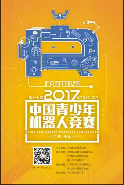 第17届全国赛将于7月17-22日在中山市实验中学隆重举行,由中国科协主办,广东省科协和中山市人民政府共同承办。简单而又隆重的开幕式,颇具中山特色的欢迎晚会,高潮迭起的五大比赛项目,丰富多彩的交流活动,科技艺术相融的闭幕式,都将带给全国各地的参赛师生快乐清新的体验,都能充分感受机器人赛事的激情魅力。