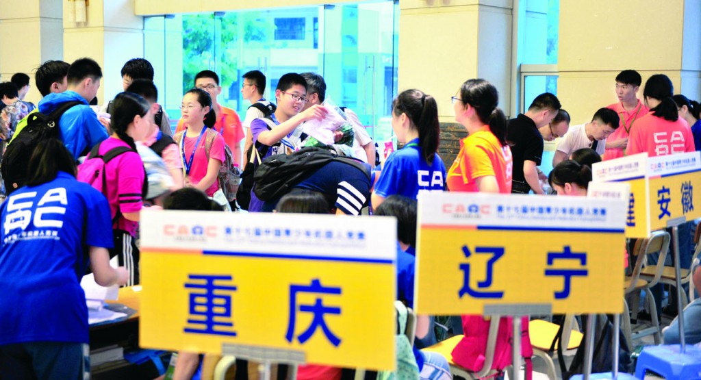 7月17日,第十七届中国青少年机器人竞赛队员陆续到实验中学报到。记者夏升权摄