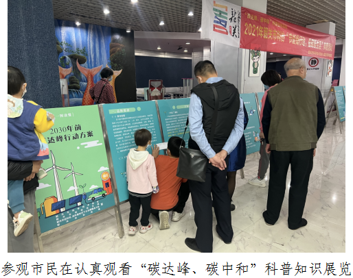 活动在市科技馆趣味机械传动展示厅进行,参与活动的市民约六十人。在趣味机械传动展示厅开设了“碳达峰、碳中和”科普知识展览,市科技馆的讲解员向参观市民介绍了图展的展示内容,并进行了相关知识的有奖问答,答对题目的观众可获得一份小礼品。市民群众踊跃参与,不仅调动大家学习环保知识的气氛,还增强了大家的环保意识。把节能环保、低碳生活的理念转化为自觉行动。