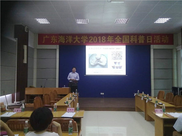 活动开始,由国家注册珠宝玉石质量检验师,全国水产标准化技术委员会珍珠分技术委员会委员,广东省水产标准化技术委员会委员,广东省珠宝玉石标准化技术委员会委员,广东省化妆品标准化技术委员会委员,广东省政府质量奖评审专家,广东省食品药品科技咨询专家童银洪教授作了题为“珍珠的功效及评价”的海洋科普专题讲座。