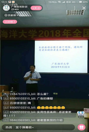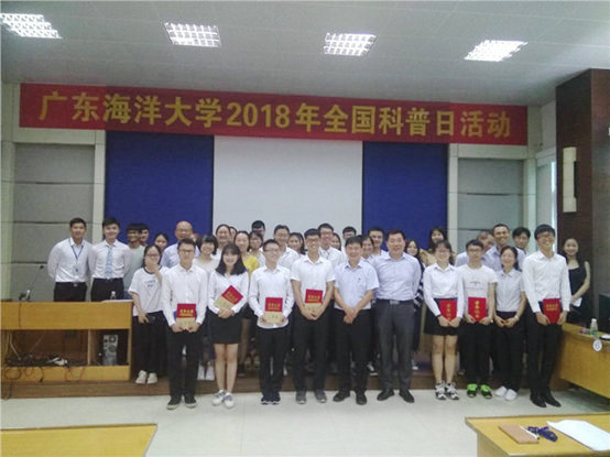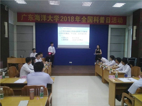 讲座结束后,广东海洋大学第四届海洋科普知识竞赛决赛在多媒体室举行。初赛采用易班网手机APP答题的形式,共有600多人参加答题,最终决出8名选手进入决赛。决赛抢答器抢答的形式,紧张又刺激。每一题后都设有答案涉及的海洋科普知识,所以即是一场比赛,又是科普知识的普及过程。最终评选出一等奖1名,二等奖2名,三等奖3名以及优秀奖2名。所有获得奖项的同学都颁发了获奖证书。