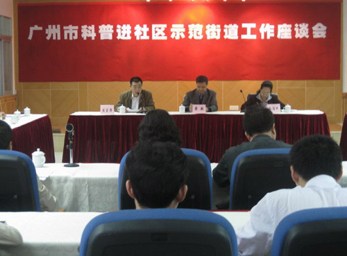 会议首先由广州市科协科普部副部长黄国驹传达中国科协2009年全国地方科协科普部长工作研讨会精神和省科协社区科普工作会议精神,广州市科协副主席张菊珍对2009年度广州市科普进社区示范街道工作进行部署,着重介绍了《关于组织实施精品科普工程的方案》的主要内容,该方案旨在打造富有岭南特色的精品科普工程,力争经过三年的努力,打造一批精品科普街、精品科普示范社区、精品科普基地和科普志愿者社区服务站,着力培育一批特色突出的“科普模范家庭”和“优秀科普志愿者”,以精品科普工程的示范带动作用,进一步推动科普工作向深度和广度发展。