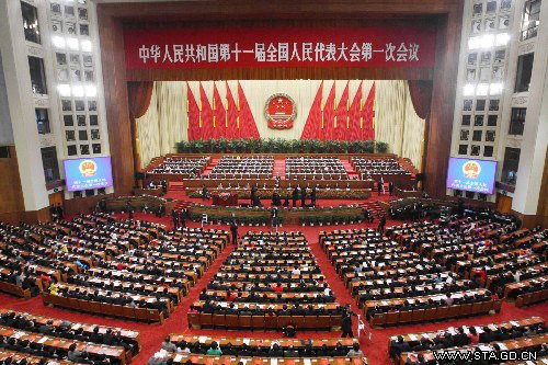 3月18日,第十一届全国人民代表大会第一次会议在北京人民大会堂举行闭幕会。新华社记者刘卫兵摄